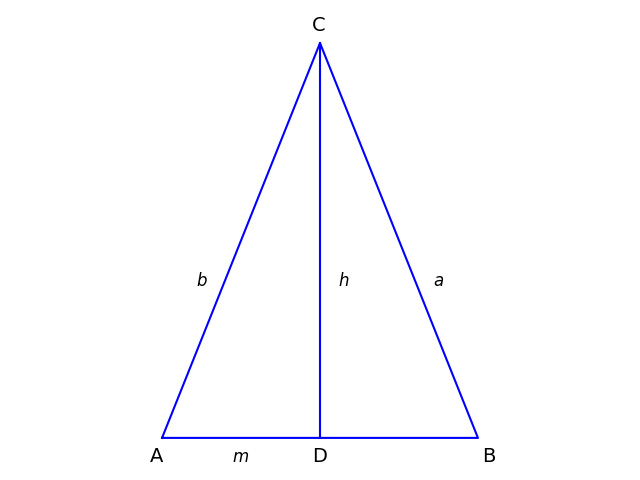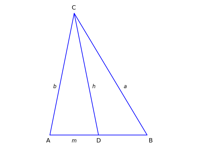 Let ABC be a general triangle, and let D be the midpoint of the segment AB. Let a be the length of the side opposite A and b the length of the side opposite B. Let m be the length of AD and h the length of the mediant, the line CD.